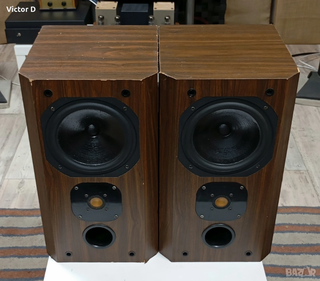 Технически свирят идеално.Визуално са с множество забележки по ламината.8 инча бас.Чувствителност-93,5 dB.Мощност-70-100 W.От 4 до 8 ома.Размери-52,5х29х30 см.(ВхШхДълбочина)
