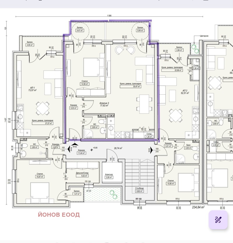 ЙОНОВ ЕООД предлага просторен 2-стаен апартамент на трети жилищен етаж с гледка към морето и Странджа планина.