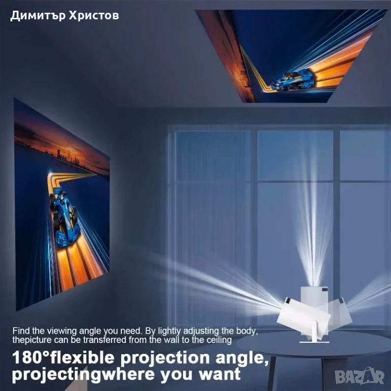 С гъвкавият си ъгъл на прожектиране можете да настроите проектора да излъчва към стени или таван, което го прави подходящ освен за всекидневни и за спални помещения, тавани и др.
