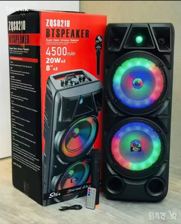 % Нова ZQS 8210 2х8 120W 6500mah 2 микрофона ПРЕНОСИМА КАРАОКЕ КОЛОНА От вносител 12 месеца гаранци