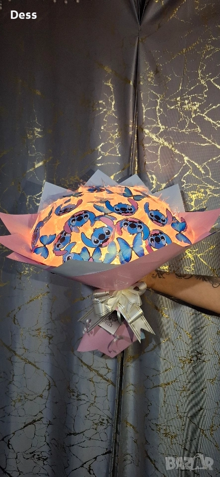 Ръчно изработен светещ букет "Стич"💙 → Обява 53165478