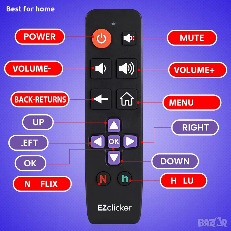 Търсите лесно и надеждно решение за вашия Roku телевизор? Това резервно дистанционно управление е специално проектирано за максимално улеснение. С неговите големи и интуитивни бутони, то е перфектният избор за възрастни хора, деца или просто за всеки, който иска изчистен контрол без излишни и сложни функции.