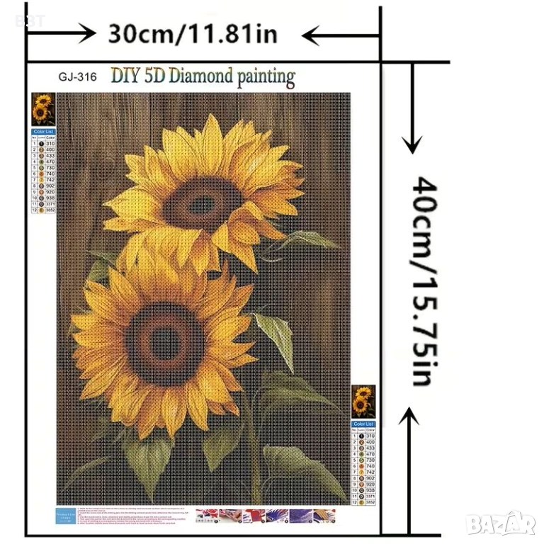 ПРОДУКТ: ДИАМАНТЕН ГОБЛЕН – СЛЪНЧОГЛЕДИ 30/40