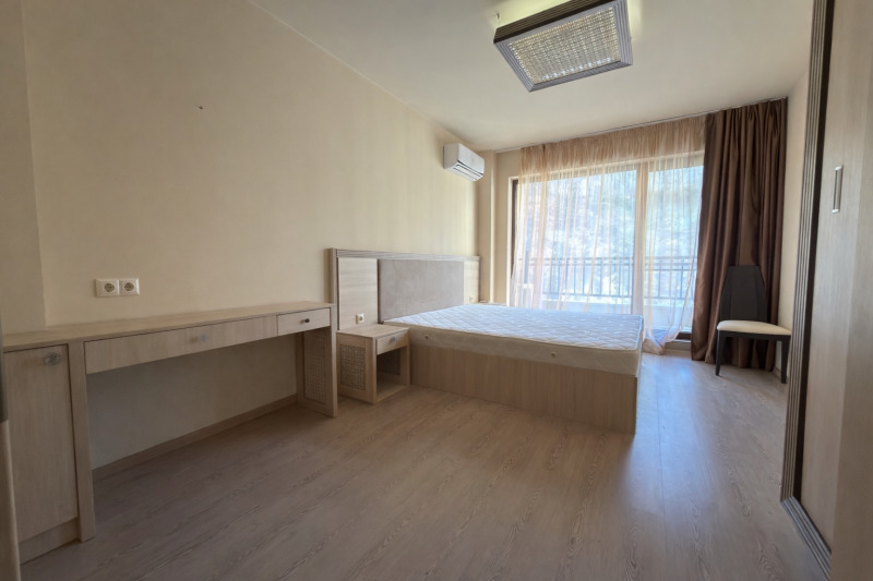 Предлагаме Ви просторен, напълно обзаведен голям двустаен апартамент, разположен само на 250 метра от морето, в престижен затворен комплекс с 10000 кв.м собствена територия.