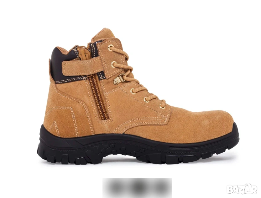 Mack Carpenter Lace Up Zip Safety Boots в цвят "мед" (honey nubuck leather). Тези работни ботуши са проектирани с оглед на нуждите на занаятчии и работници, които се налага да събуват и обуват обувките си многократно през деня.
