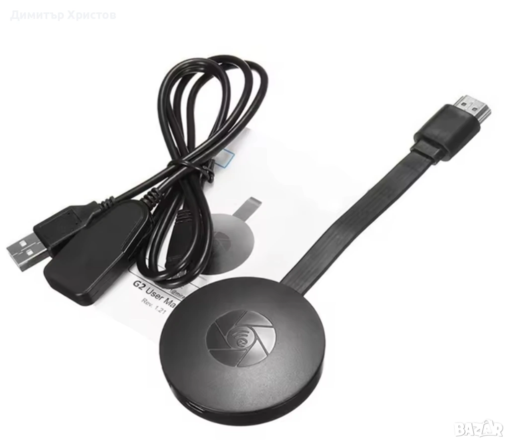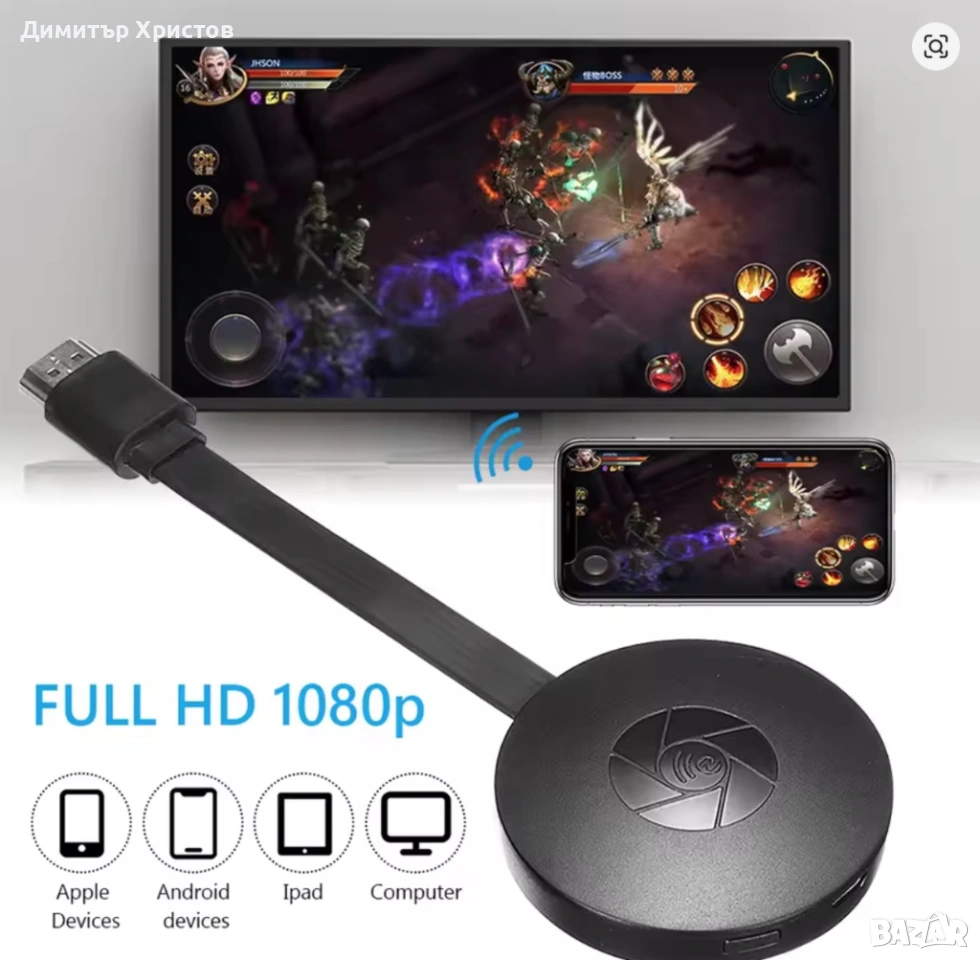 Безжичен приемник: WiFi HDMI-съвместим адаптер за безжично споделяне на екрана. Поддържа 1080P резол