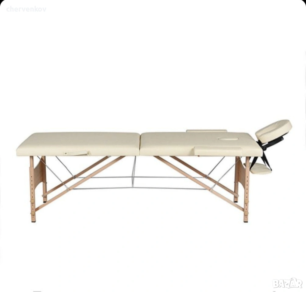 трисекторна козметична масажна кушетка дървена бяла крем масажно легло