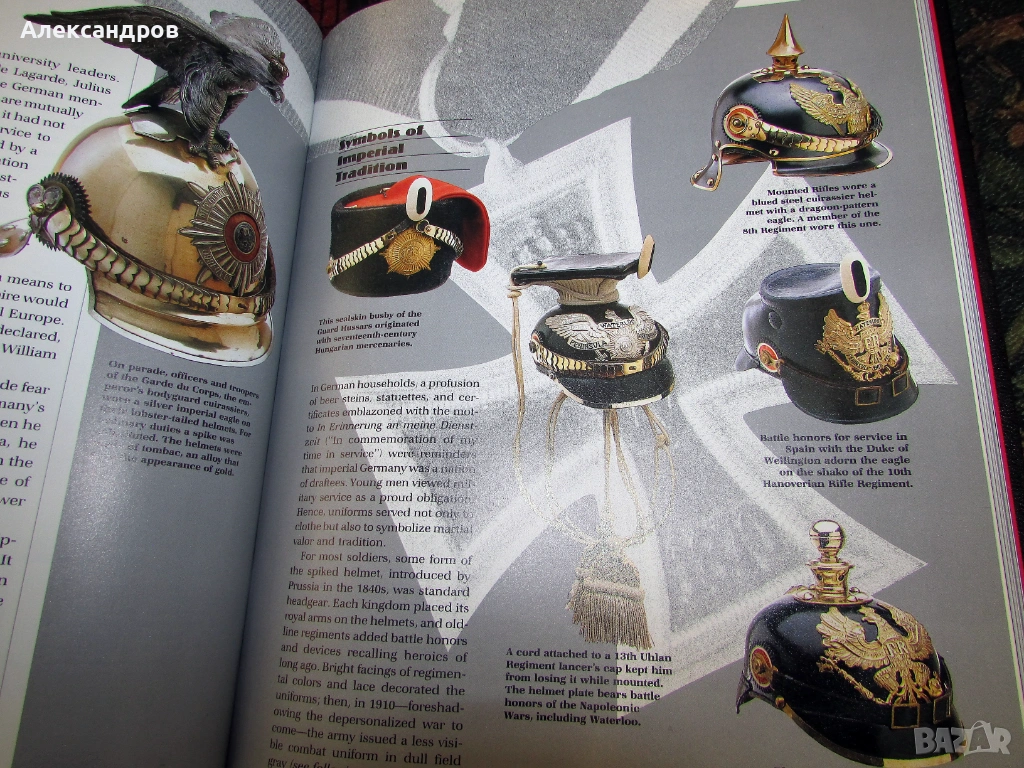 Енциклопедията е на английски език. Твърди корици, 190стр. Текста е подкрепен с невероятен снимков материал, скици, рисунки, постери, просто разгледайте снимките. Ще кача и другите книги от тази поредица те са около 10тина. Цена за една 20е. Много добра аранжировка и качество на книгата, принта е много добър, регалията изглежда уникално, снимките са много живи. Като цяло това е най-добрата поредица за Райха.