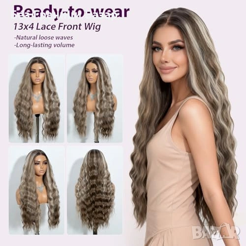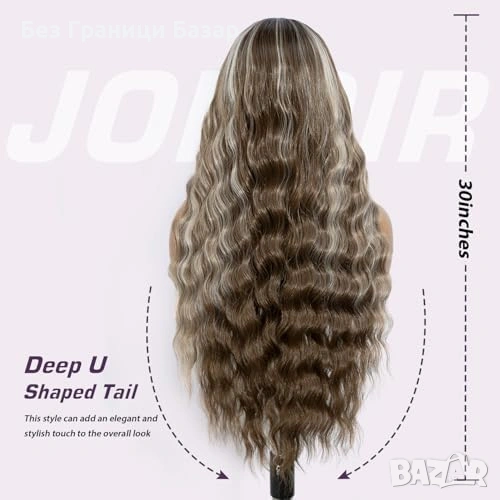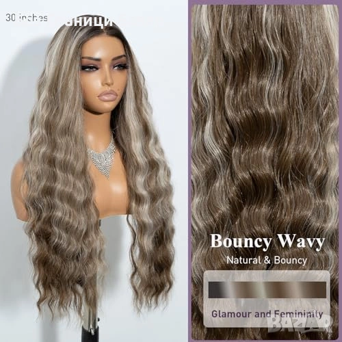 Дълга синтетична перука с вълнообразен стил и естествени акценти
