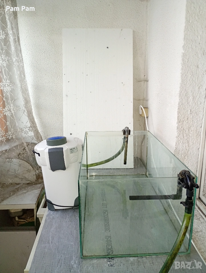 Аквариум 80-90литров с външна помпа, няколко е месеца използвана. Цена по договаряне. Не отговарям на съобщения, моля позвънете на посочения номер