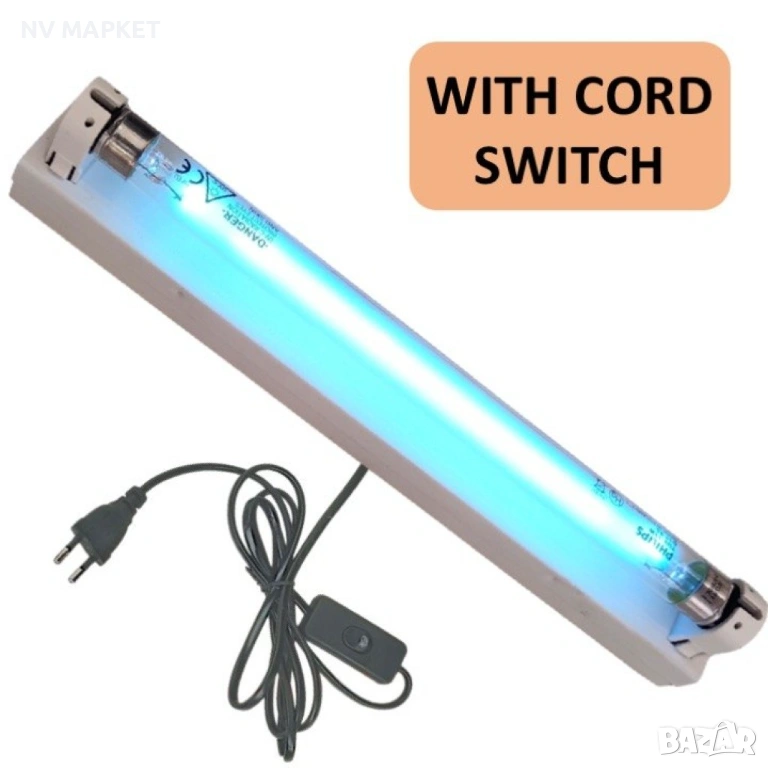 Противомикробна UV стерилизираща лампа за гардероб, 31 см, Напрежение: 220 V Мощност: 8 W- с щепсел. Основни предимства: Убива микробите и вирусите: Тази лампа използва ултравиолетовата (UV-C) светлина, която е известна със своите противомикробни и дезинфекциращи свойства. Тя унищожава бактерии, вируси и други патогени, които могат да се намерят върху вашите дрехи и аксесоари. Лесна употреба: С щепсел, който може да се включва в стандартен контакт, тази лампа е изключително лесна за използване. Просто я включете и оставете да работи за няколко минути, за да постигнете максимална степен на стерилизация. Компактен и удобен дизайн: С дължина от 31 см, лампата е достатъчно компактна, за да бъде поставена във всяко гардеробно пространство. Не заема много място и не пречи на подредеността на вашия гардероб. Защита на вашия здраветел: Стерилизирането на вашите дрехи и аксесоари с тази UV лампа помага да се предпазите от бактериални и вирусни инфекции, осигурявайки по-здравословен начин на живот. Многофункционалност: Освен за гардероби, тази лампа може да бъде използвана и в други пространства като баня, кухня или офис, за да поддържа чистота и хигиена.
