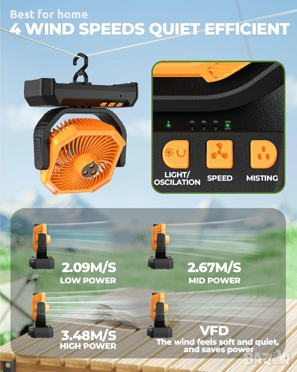 Вграден супер мощен LED фенер: Разполага с няколко режима на работа, включително силна светлина и SOS сигнал за безопасност в планината.