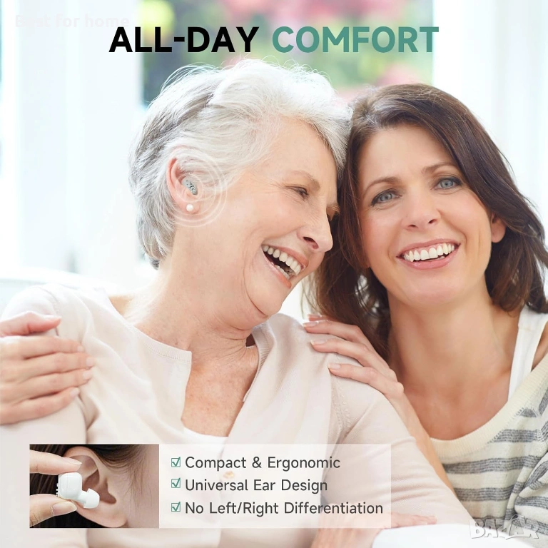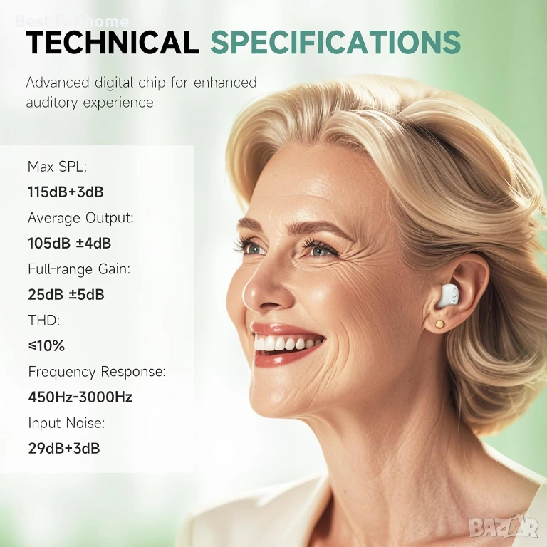 Модерна дискретност: Изглежда като стандартна Bluetooth слушалка, което премахва социалното неудобство от носенето на традиционен слухов апарат.