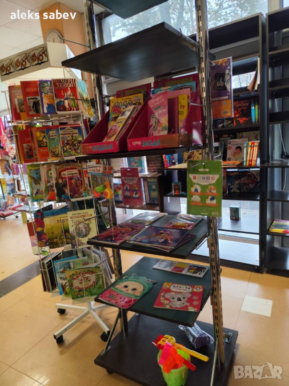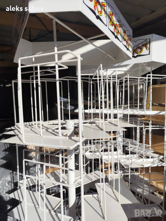 Продавам магазинни стелажи/рафтове, витрини и рекламни/въртящи дисплеи – втора употреба, много добро запазено състояние.