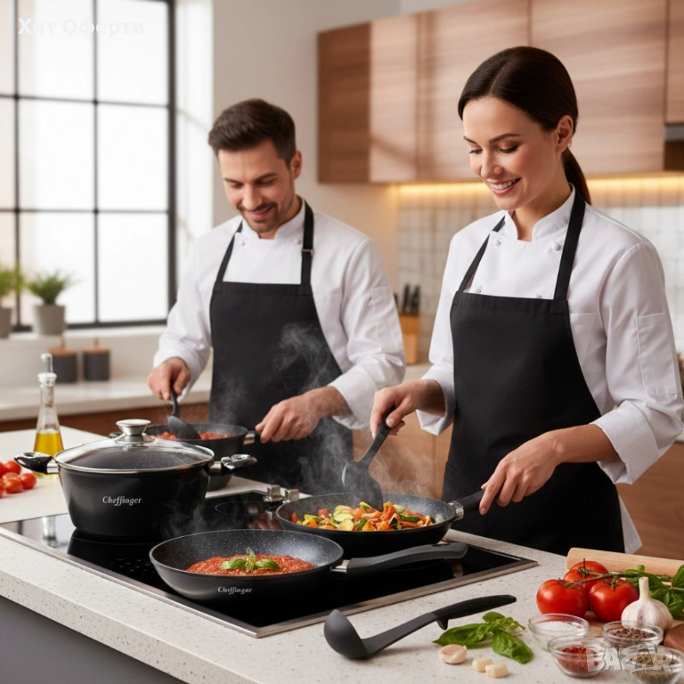 Комплект съдове за готвене 6 части Cheffinger – тенджера 24 см, тигани 24 и 28 см, за индукция