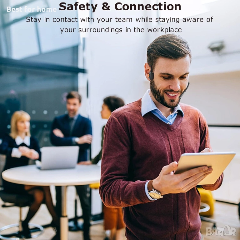 Революционизирайте начина, по който работите и общувате със слушалките на MONODEAL. Благодарение на технологията за костна проводимост, звукът се предава чрез вибрации към скулите, оставяйки ушните ви канали напълно свободни.Това осигурява несравним комфорт при носене през целия ден и ви позволява да останете нащрек за заобикалящата среда (колеги, семейство или трафик). Моделът разполага с гъвкав микрофон, който изолира шума, за да осигури кристално чисти бизнес разговори.