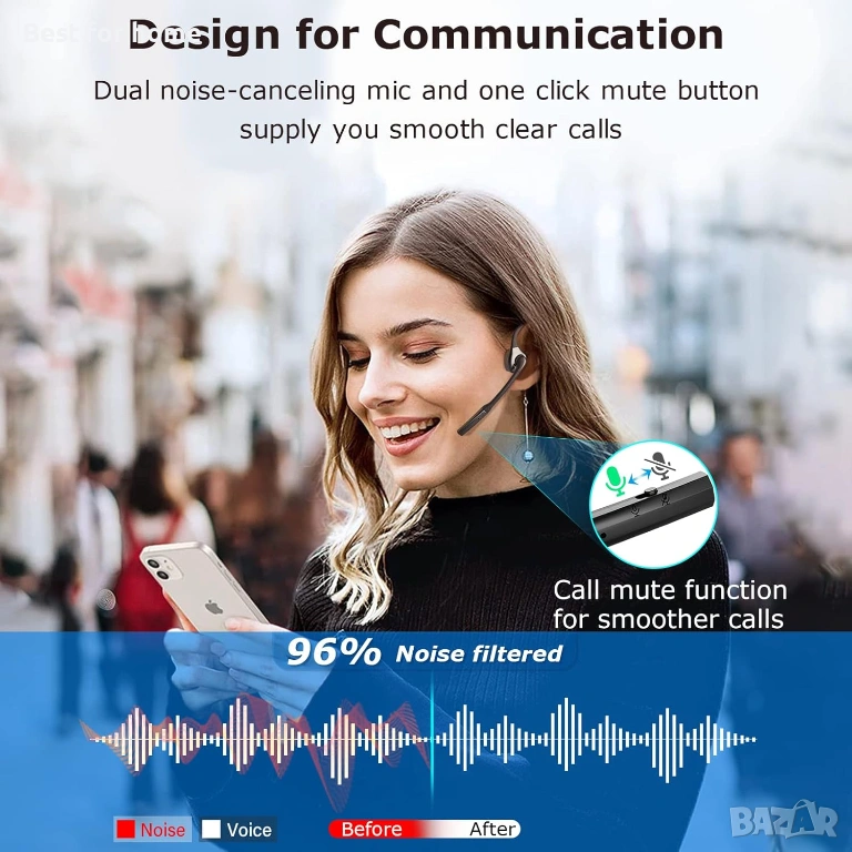 Дълъг живот на батерията: До 10-12 часа непрекъснати разговори с едно зареждане и бързо USB-C захранване.