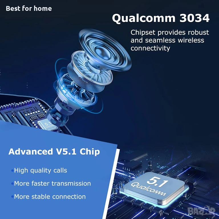 Bluetooth 5.3: Най-стабилната и бърза безжична връзка с ниска латентност.