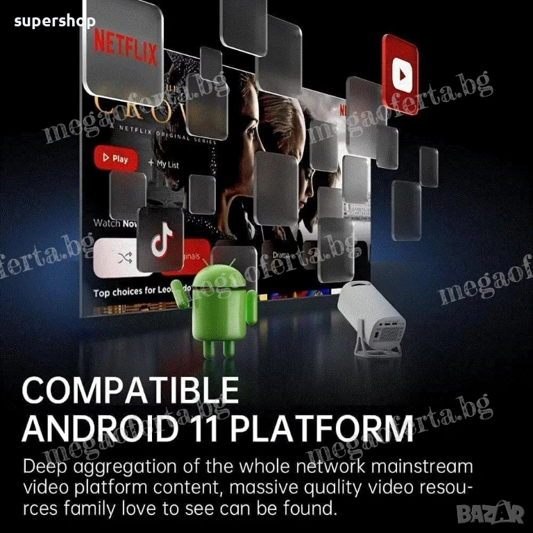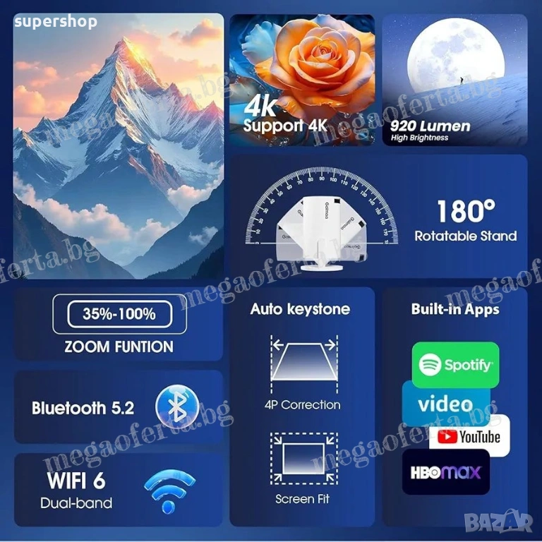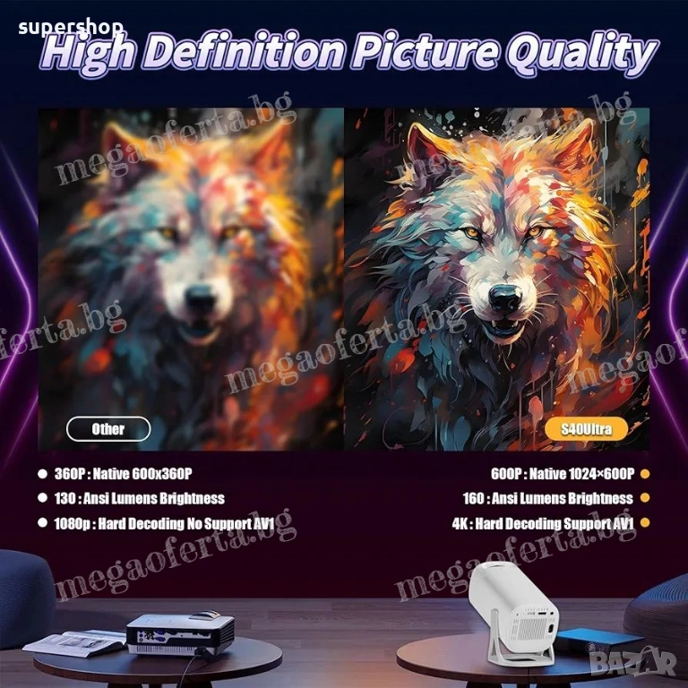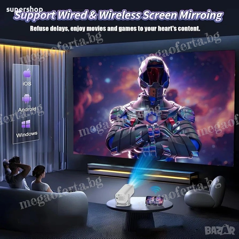Безжичен Проектор 37 000 Вградени Игри Безжичен Стрийминг до Платформи