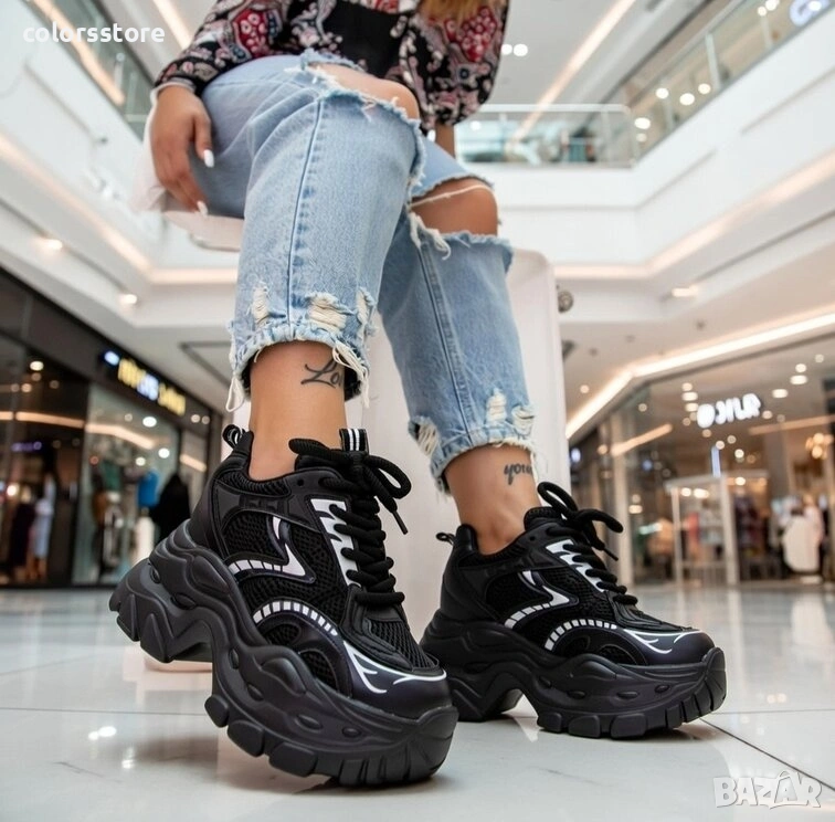 Кецове на платформа - черна кожа и мрежа - 3SJN60