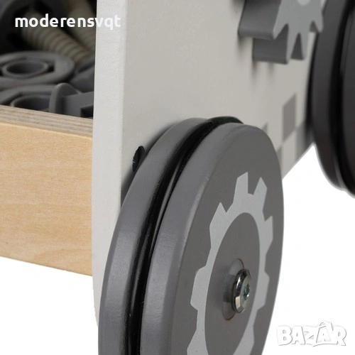 събужда интереса на децата - дървената работилница е не само играчка, но и образователен инструмент, който развива координацията, въображението и ръчните умения, всяко дете ще намери нещо интересно от завъртане на менгеме до завинтване на винтове