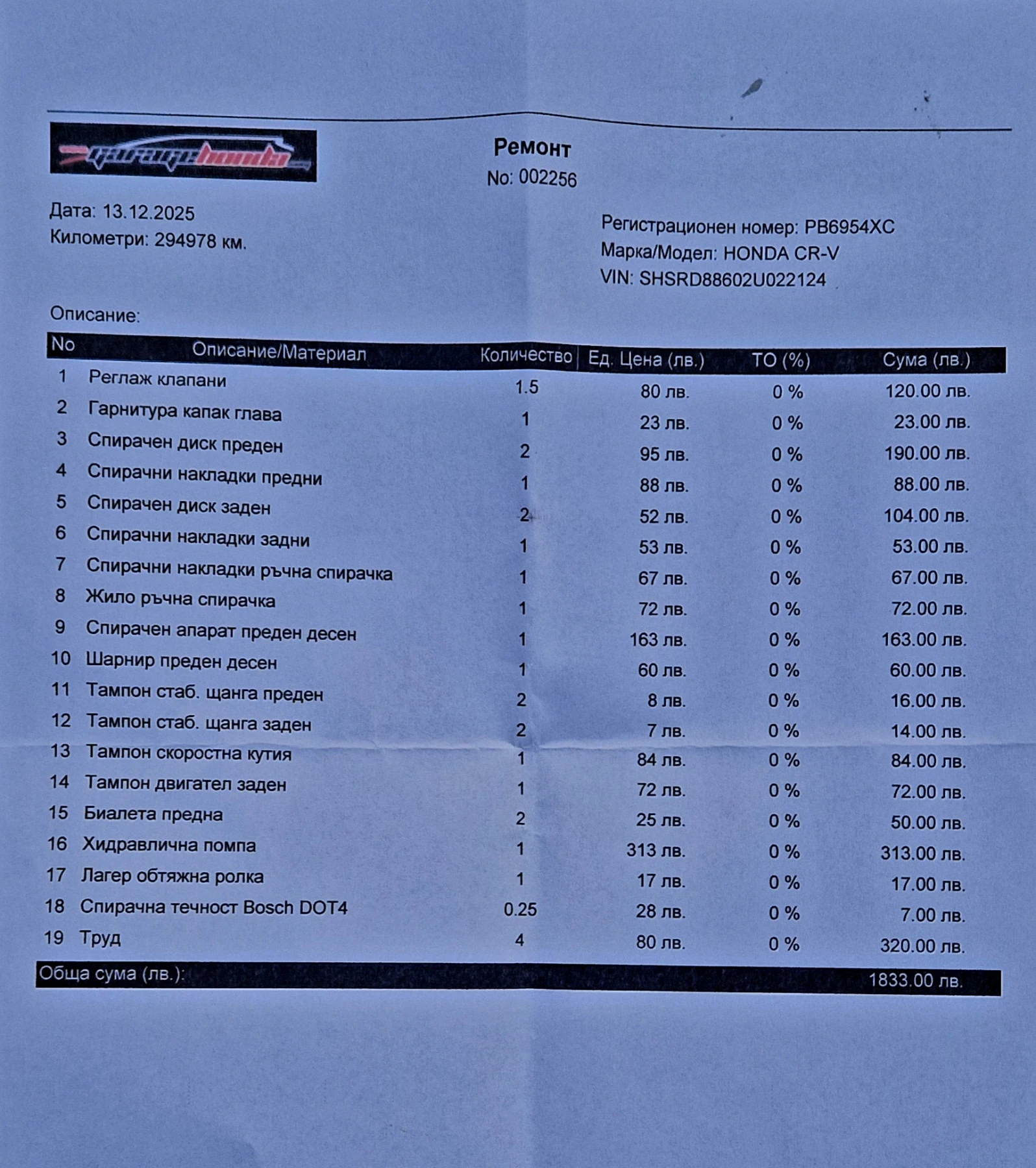 - • Сервизна книжка