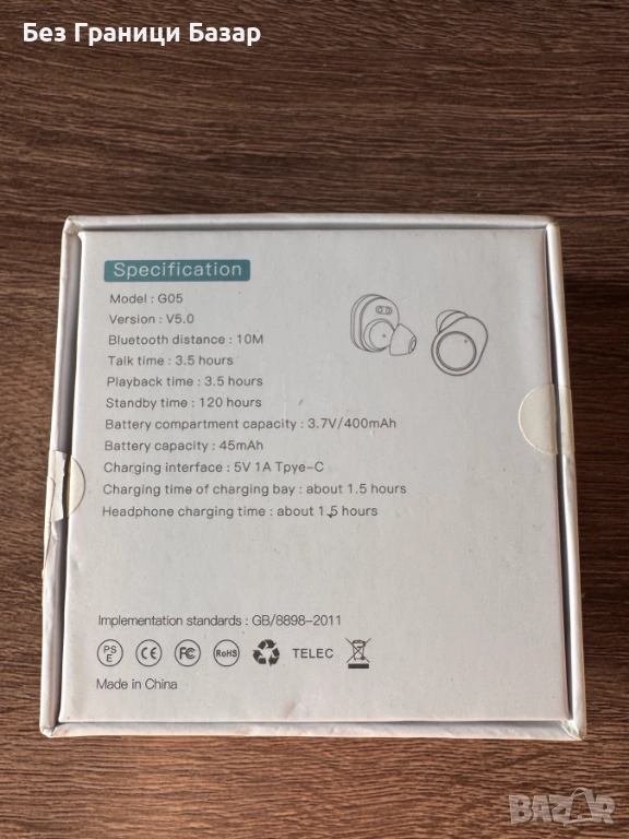 Нови Безжични слушалки G05, Bluetooth 5.0, Type-C, 3.5 часа музика