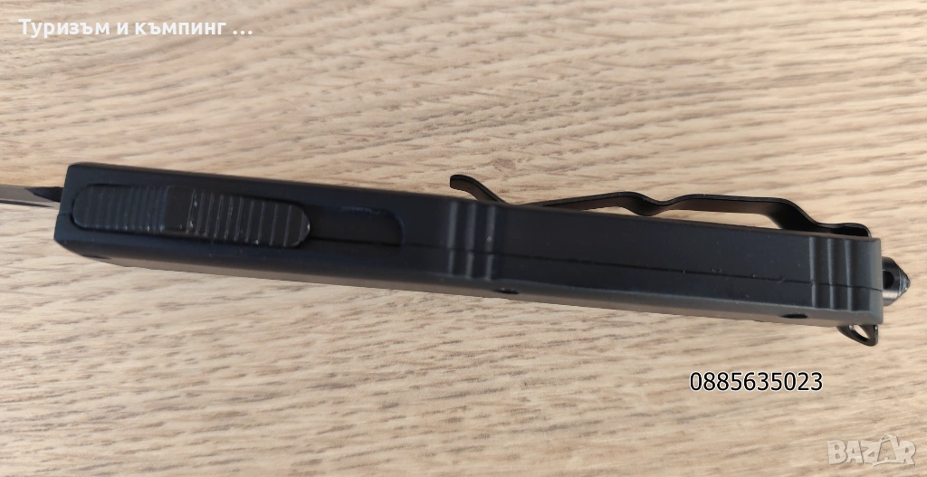 Дръжката е изработена от анодизиран алуминий, острието е изработено от отлична стомана 8Cr13MoV - подобна на 440С.