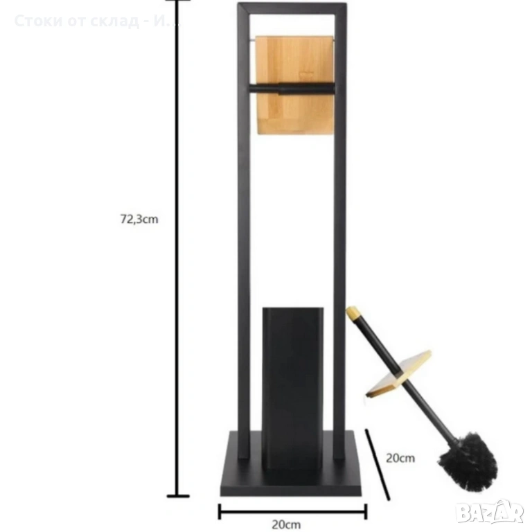 Стойка 2в1 Cheffinger за баня с тоалетна четка и държач за тоалетна хартия – метал и дърво → Обява 53169548