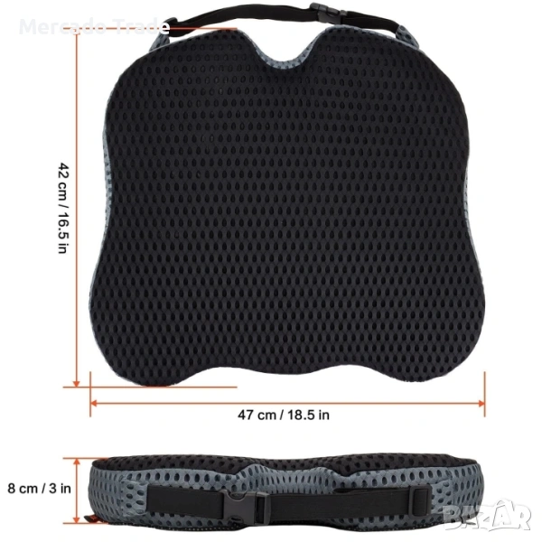 Възглавница с мемори пяна и 3D дишаща мрежа, Противохлъзгаща, За офис или кола
