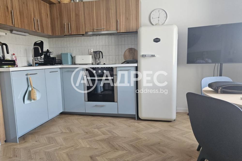Двустаен апартамент, състоящ се от голямо входно антре, дневна с кухненски бокс, голяма спалня, малка спалня-кабинет, балкон, баня с WC.