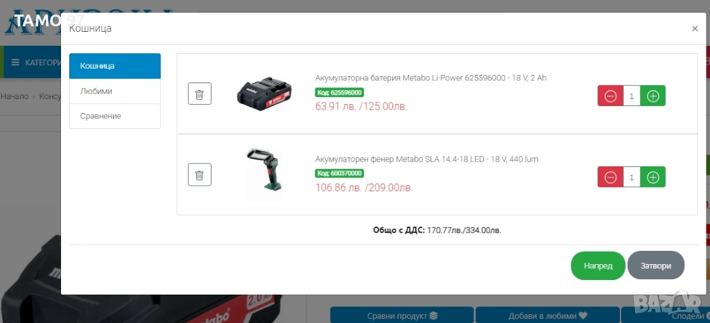 Продавам лек и компактен акумулаторен LED прожектор на Метабо неразличим от нов, както се вижда на снимките и работи брилянтно, тайванско производство внос от Франция. Обявената цена е за лампата с една батерия 18V 2.0Ah с индикатор.Пращаме с опция преглед и тест с куриерска фирма еконт може и лично предаване за гр. Шумен.