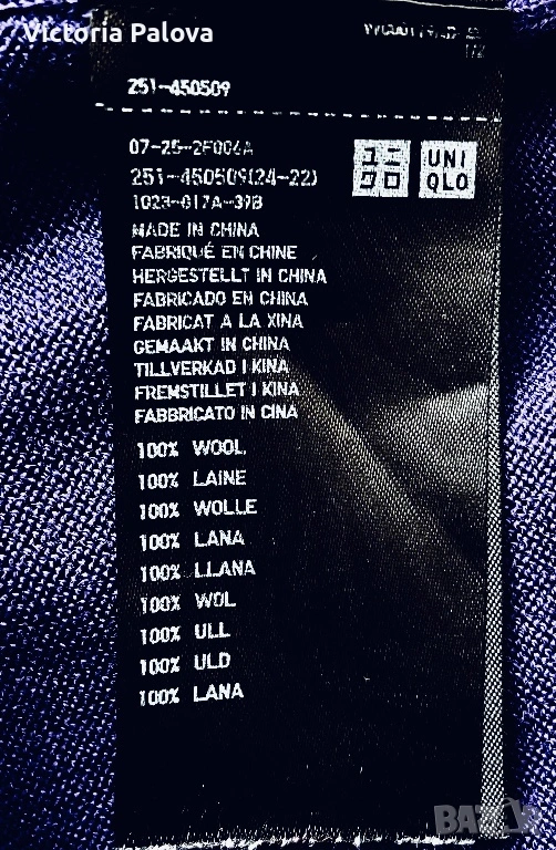UNIQLO, известна с безкомпромисното си качество и функционален дизайн. 100% естествена вълна , фина, лека,гладка и изключително приятна на допир. Кройката е права и балансирана, с обло деколте и стабилни маншети. Универсален модел, който стои добре както самостоятелно, така и под сако. Артикул, който отразява философията на UNIQLO - високо качество, практичност и вечен стил. Рамо - 46-48см, ГО - 55см, дължина - 67см, ръкав - 69см.