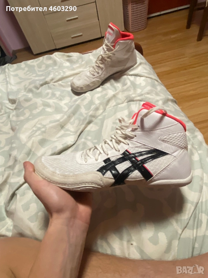 Борцовките са 43,5 номер,ползвани само 2-3 седмици,не са скъсани и нямат забележки,продавам ги защото спрях с тренировките.