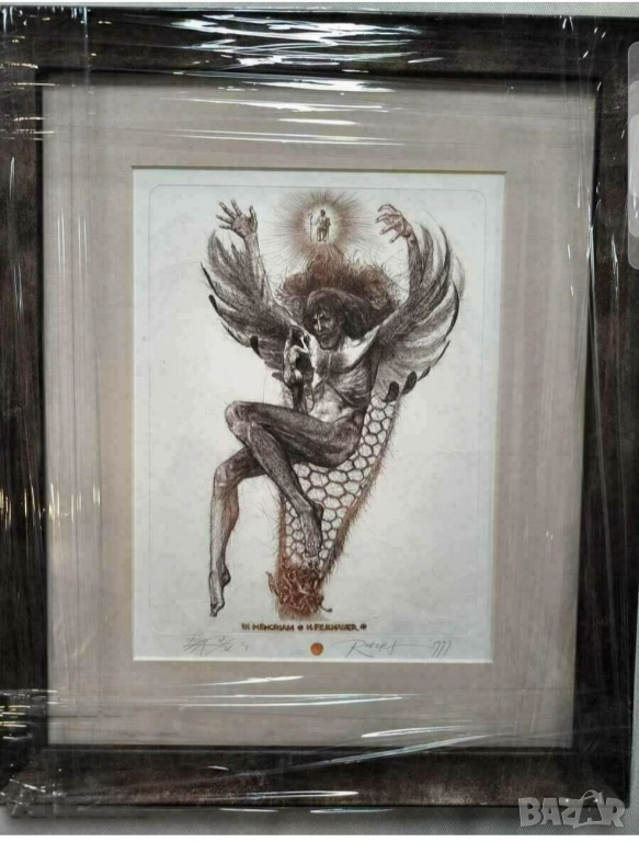 Стара картина падащия ангел прогонен от Бог и женското изкушение Робърт Баръмов /1966. - 2021 г.