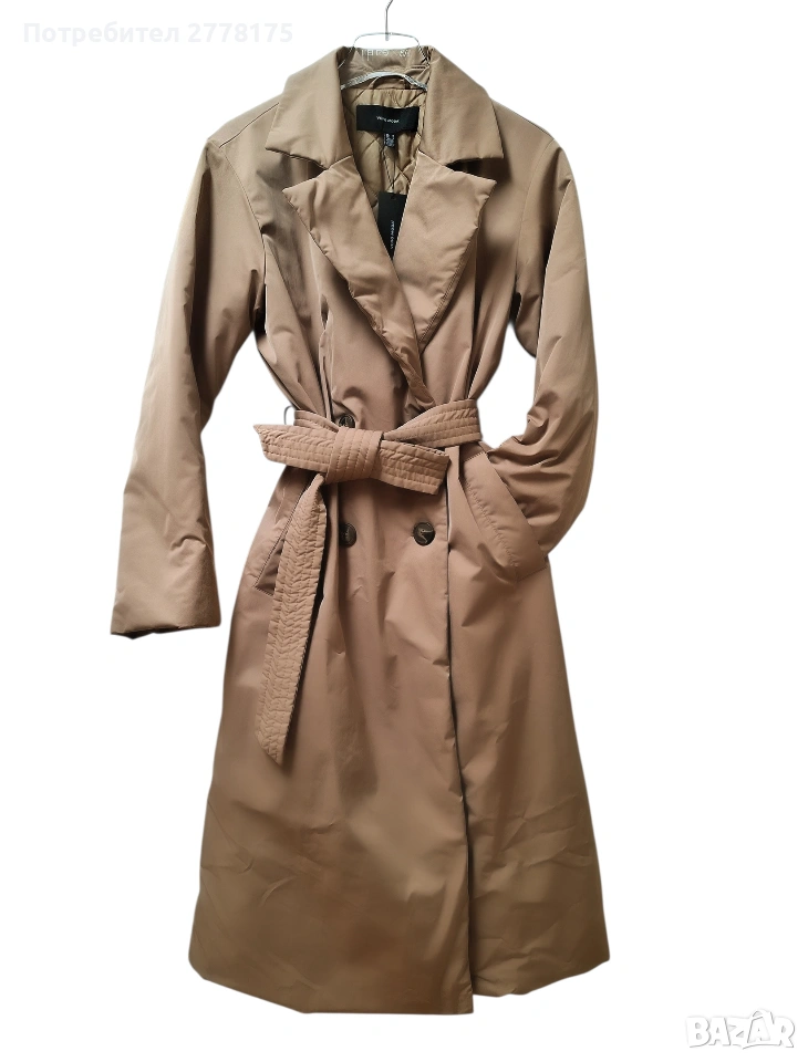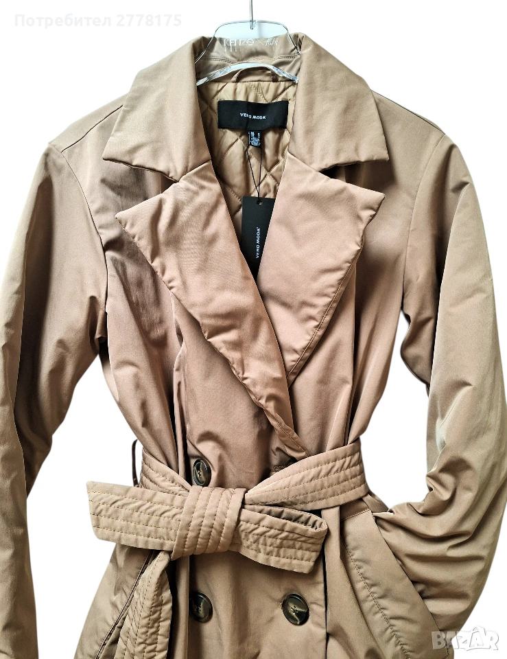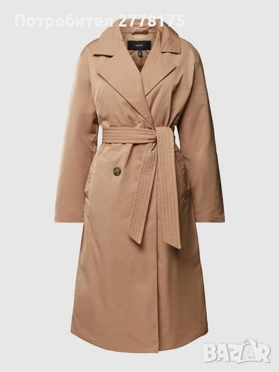 Vero Moda, супер красив тренч с двуредно закопчаване и колан, който е за студено време, с капитонирана топла подплата. Нов с етикет, размер М. Бежов цвят.