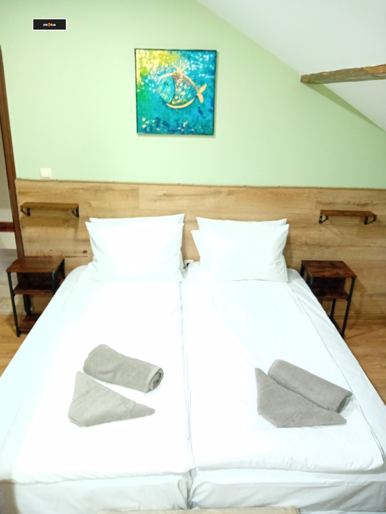 Всяка стая е напълно обзаведена: телевизор 📺, единични легла, нощни шкафчета