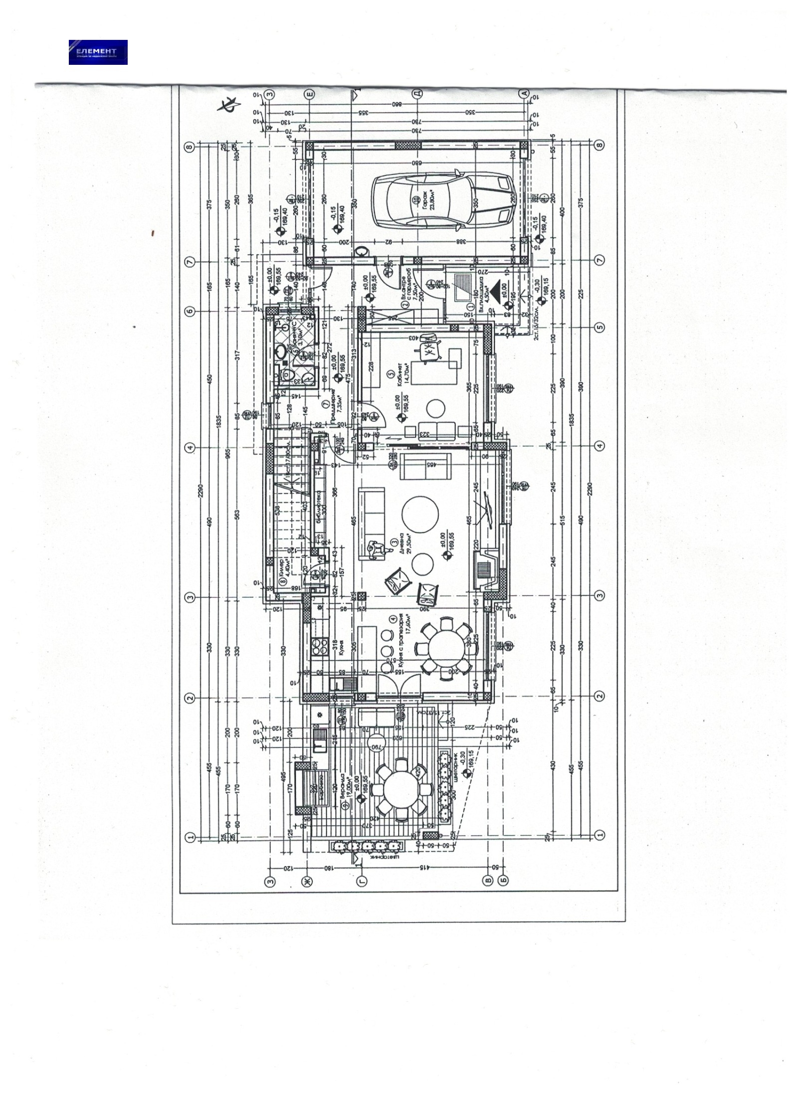 Партерно ниво 155м2 и двор 440м2 се състои от : Огромна светла и просторна дневна със светъл кухненски бокс и излаз на покрита веранда с всички изводи за лятна кухня и барбекю. Верандата излиза на прелестен озеленен двор с поливна система, която можете да нагласяте автоматично с вода от сонда или ВиК., място за Камина в дневната; антре, баня с тоалетна, склад , гараж с топла връзка . Ако е необходимо част от хола би могъл да се превърне в кабинет, офис или още една спалня.