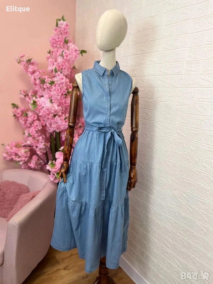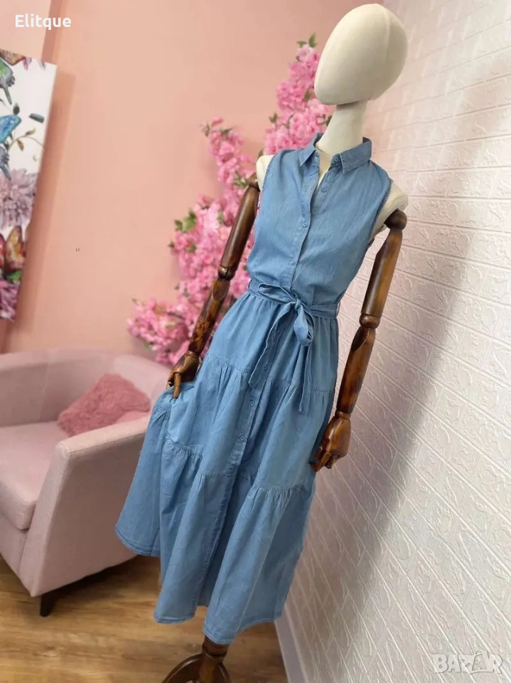 дълга рокля Деним с копчета