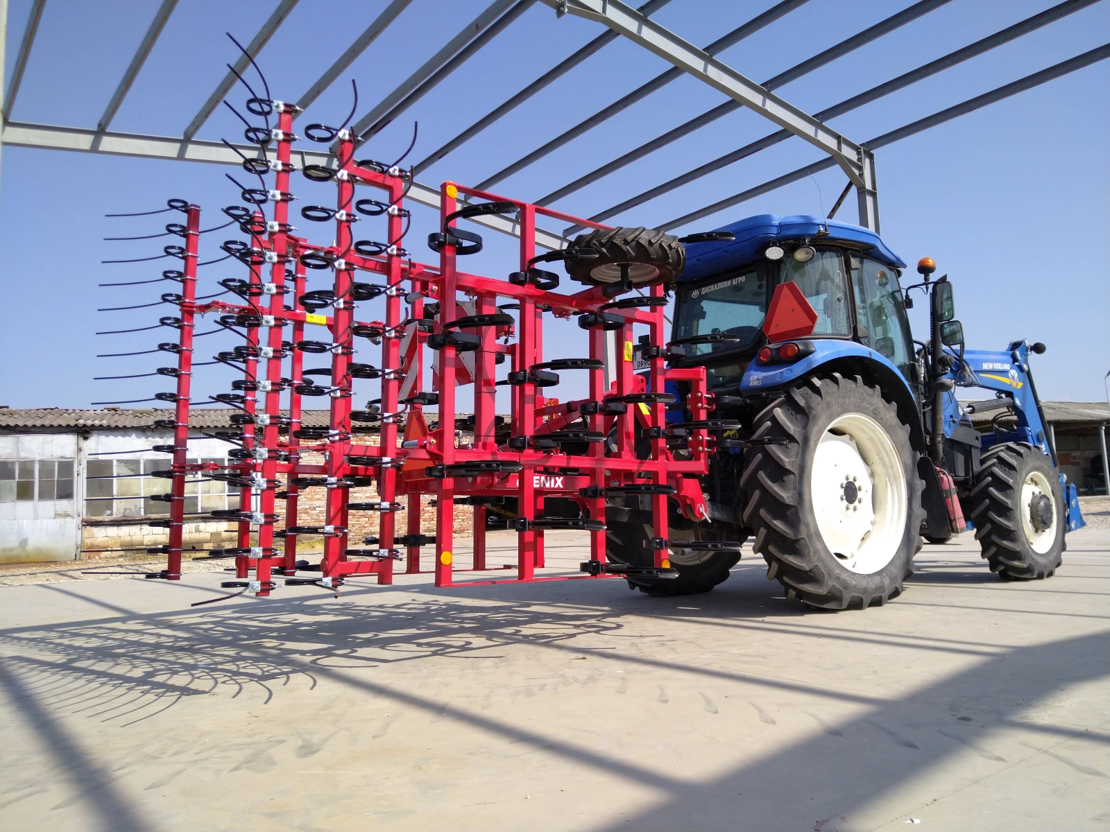 Култиватор КНСО 4 метра с 4 реда работни органи 45x12, два реда иглена брана 12мм Бианчи извита тип Ведерщад или стандартни прави на рама с пружинен натиск и 1 ред иглена брана на паралелограм. Опорни колела - 6, 5x13 рибена кост OZKA , немски главини - Knott. Хидравлично сгъване с хидравлични ключалки на крилата , клапан с овърцентър в двете посоки и дроселов клапан за регулиране на скороста на разгъване/сгавъне. Регулиране на дълбочината чрез 2 опорни колела. Може да се произведе и по индивидуално задание. Цената се отнася за 4 метра с 28 работни органа 45x12 , 3 реда или общо 70 иглени брани и 4 броя заличители за следите зад гумите на индивидуално окачване. Цената без третия допълнителен ред иглена брана и без заличителя за следи е с около 1000 лв по-ниска. Даскалови Агро произвежда различни видове навесни култиватори за слята повърхност. Различни рами и окомплектовки за 45х12 , 32х12 , 25х25 и други органи. Заличители на следи на гумите и други опции към култиваторите. Култиваторите се продават с необходимите документи за регистрация към КТИ и с 3 години гаранция (не включваща работните органи) За индивидуална оферта на телeфона от обявата - Иван Даскалов