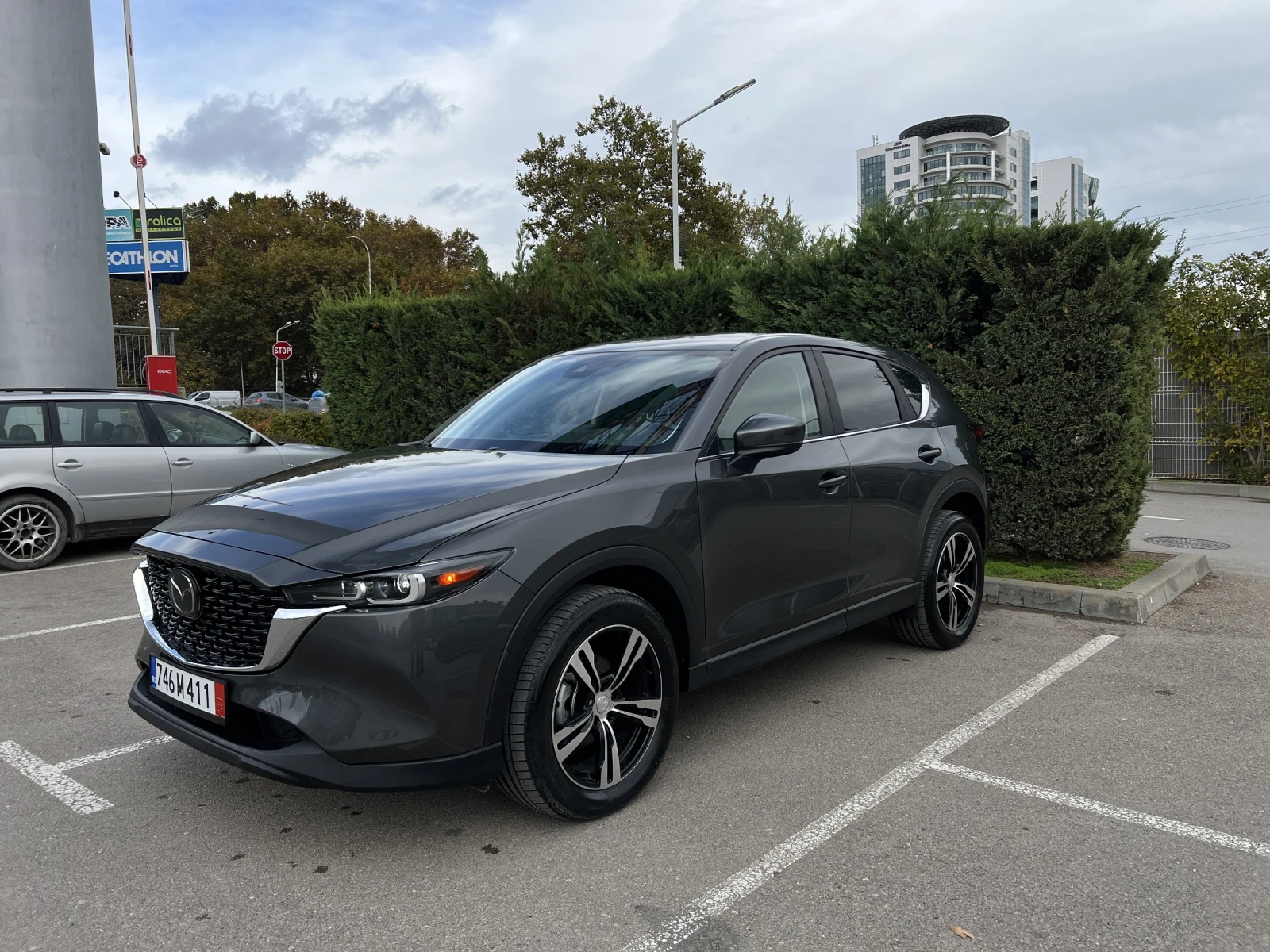 *Регистрирана, всичко платено* **Реални километри** **Чисто нови летни гуми с 19" джанти** **Android Auto & Apple Car play** G-Vectoring Control -Динамичен контрол на движението, MRCC (Adaptive Mazda Radar Cruise Control) адаптивен радарен круиз контрол. LDWS - система следяща за отклонение от лентата на движение със звуков сигнал, вибрация, срещуположна корекция на волана, следене на пътното платно, SCBS (Smart City Brake Support) с-ма, предотвратяваща сблъсък при движение в градска среда, Rear SCBS - с-ма предотвратяваща сблъсък при движение назад със скорост от 2 до 8 км/ч, BSM (Blind Spot Monitoring) - радарна с-ма за следене на мъртвата зона, RCTA (Rear Cross Traffic Alеrt) - с-ма сигнализираща за пресичащи автомобили при маневра назад, автоматични AHM ( LED матрични фарове - LED-дневни светлини, и LED задни светлини, отопление на волан и предни седалки, ел. управляема врата на багажника, камера за обратно виждане . HHA - Hill Hold Assist - система за подпомагане при потегляне по наклон. TPMS - система следяща налягането на гумите. Предстои регистрация на автомобила, всичко платено. 2-ри комплект гуми и джанти - 17 джанти, all weather оригинални стелки, неразопаковани са текстилните.