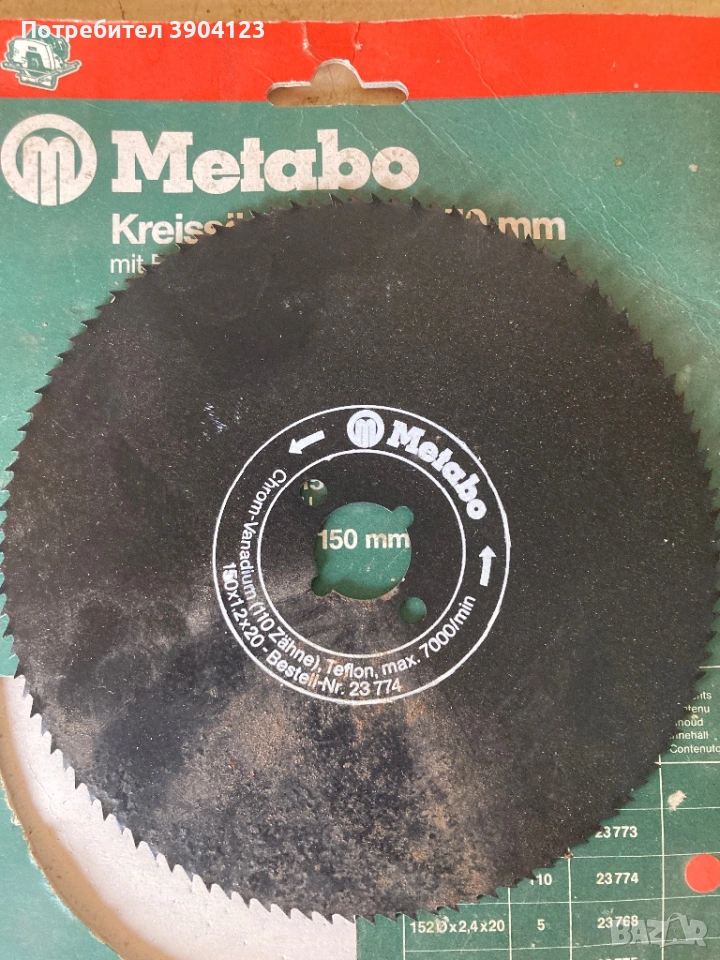 Диск за циркуляр Metabo, снимка 1 - Други инструменти - 53171186 Диск за циркуляр Metabo, снимка 2 - Други инструменти - 53171186 Диск за циркуляр Metabo, снимка 3 - Други инструменти - 53171186 1/3