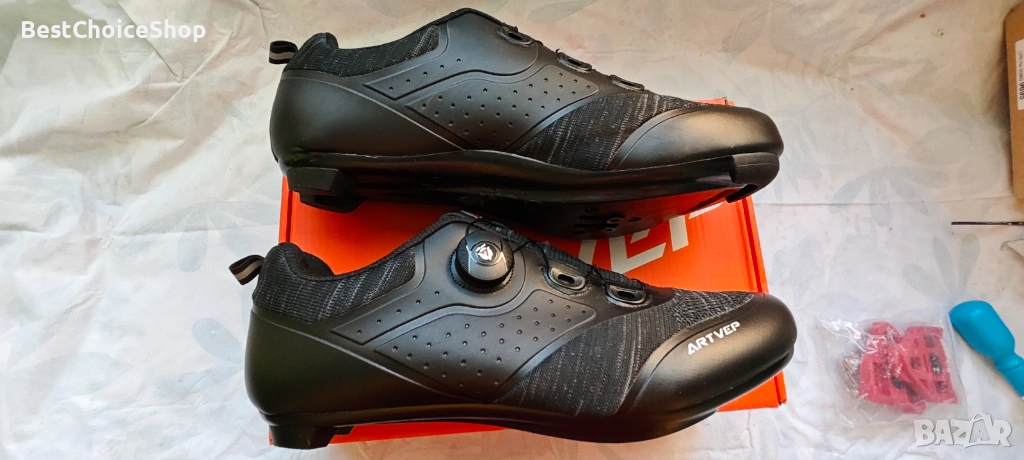 Aтрактивен дизайн на колоездачните обувки ARTVEP, дизайн с две копчета, поддържат правилната стойка при каране, предотвратяват наранявания на глезена и коляното.