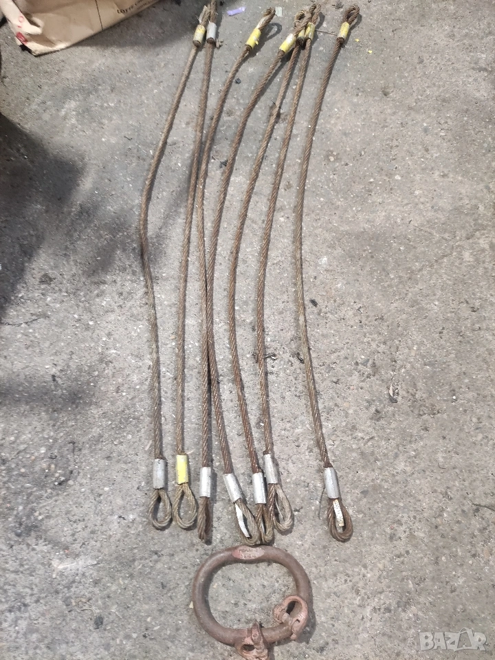 ​Сапани: 7 броя стоманени въжета с дължина 0.96 м и диаметър 8 мм. Товароносимост 600 кг на всяко. Производител: EFMETAL (Полша).