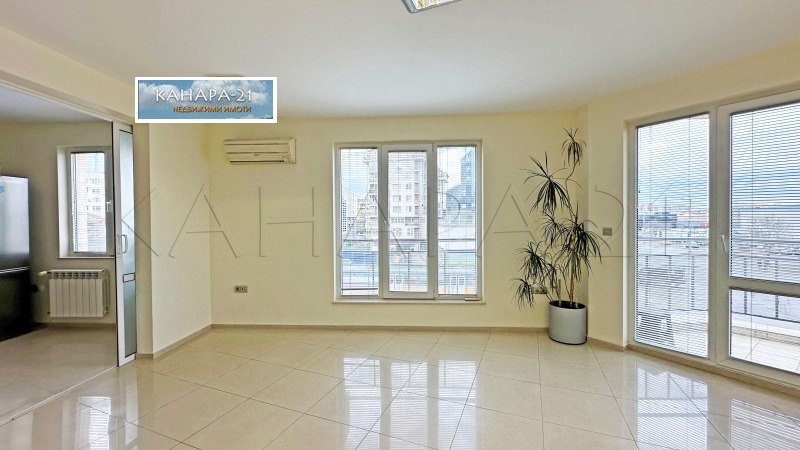 'КАНАРА-21' дава под наем 3-стаен обзаведен имот за офис, по нотариален акт - ателие, със ЗП 94 кв.м, на втори жилищен етаж над магазини, реален трети етаж. На кръстовището на бул. Проф. Цветан Лазаров и бул. Копенхаген. Оборудвана кухня с миялна машина, вградени фурна, керамични котлони, абсорбер. Хладилник с фризер. Машина за вода. Климатик. Централен ТЕЦ. Алуминиеви щори по прозорци. СОТ. Видеодомофон. Досега имота е ползван за офис. Настилки в целия апартамент - гланц гранитогрес плочи 50/50 см. Балкон пред дневна. Паркомясто в двора на кооперацията отделно от цената на апартамента, с подход от две бариери на двата булеварда. За крайни клиенти непушачи и без домашни любимци. Депозит два наема и половина и един наем предплата при подписване на договор за наем. Данък по прихода от наем е за сметка на Наемателя. За контакти: 0898 486 141