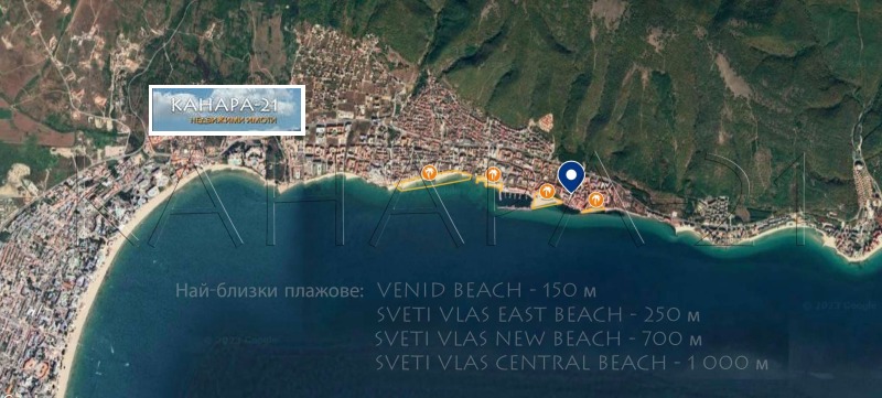 * Sveti Vlas Central Beach - 1 000 метра