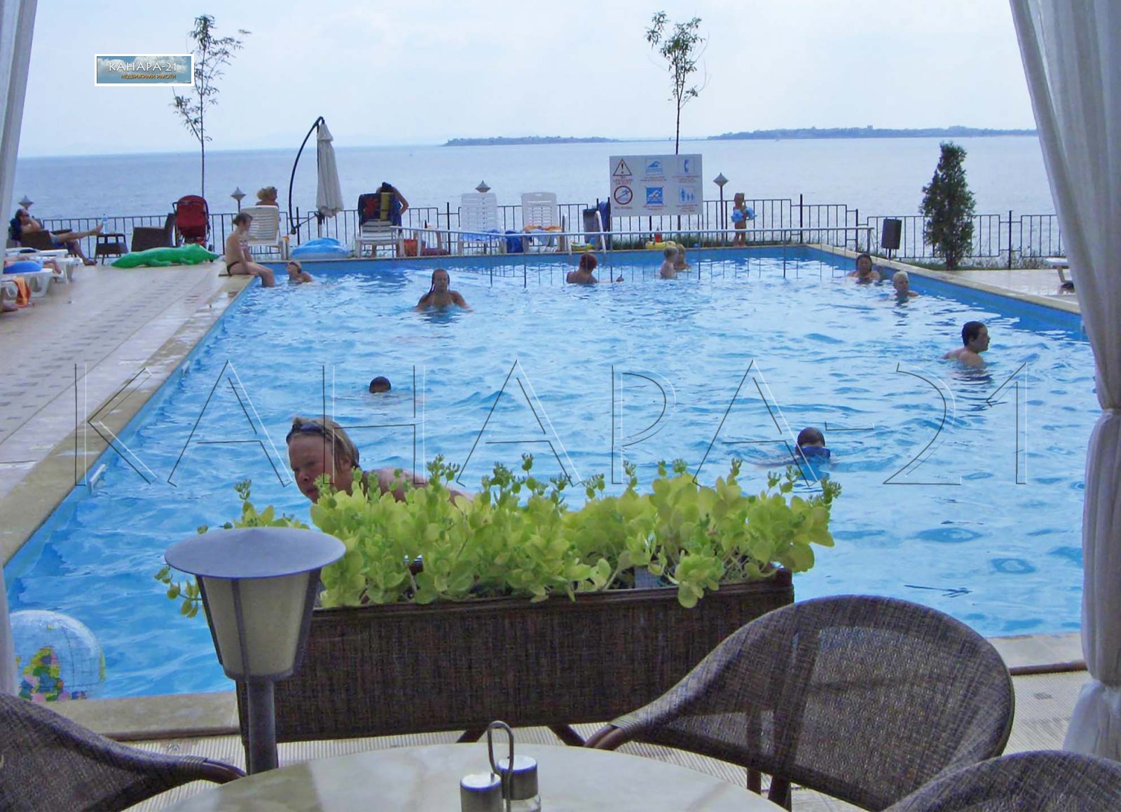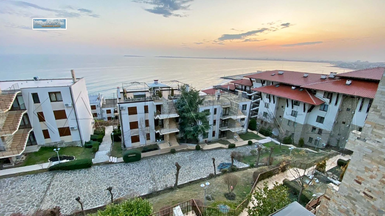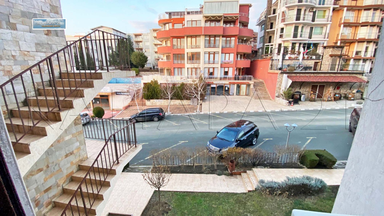 На минутa от блока се слиза по стълби до панорамен басейн към морето - част от комплекса. До две - три минути се излиза директно на плажа - пеш по стълби и до Яхтеното Пристанище - 'Марина Диневи'.