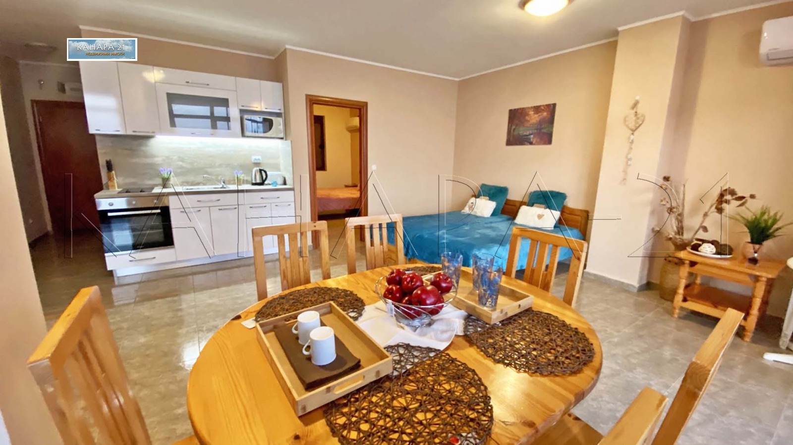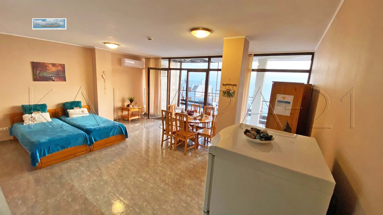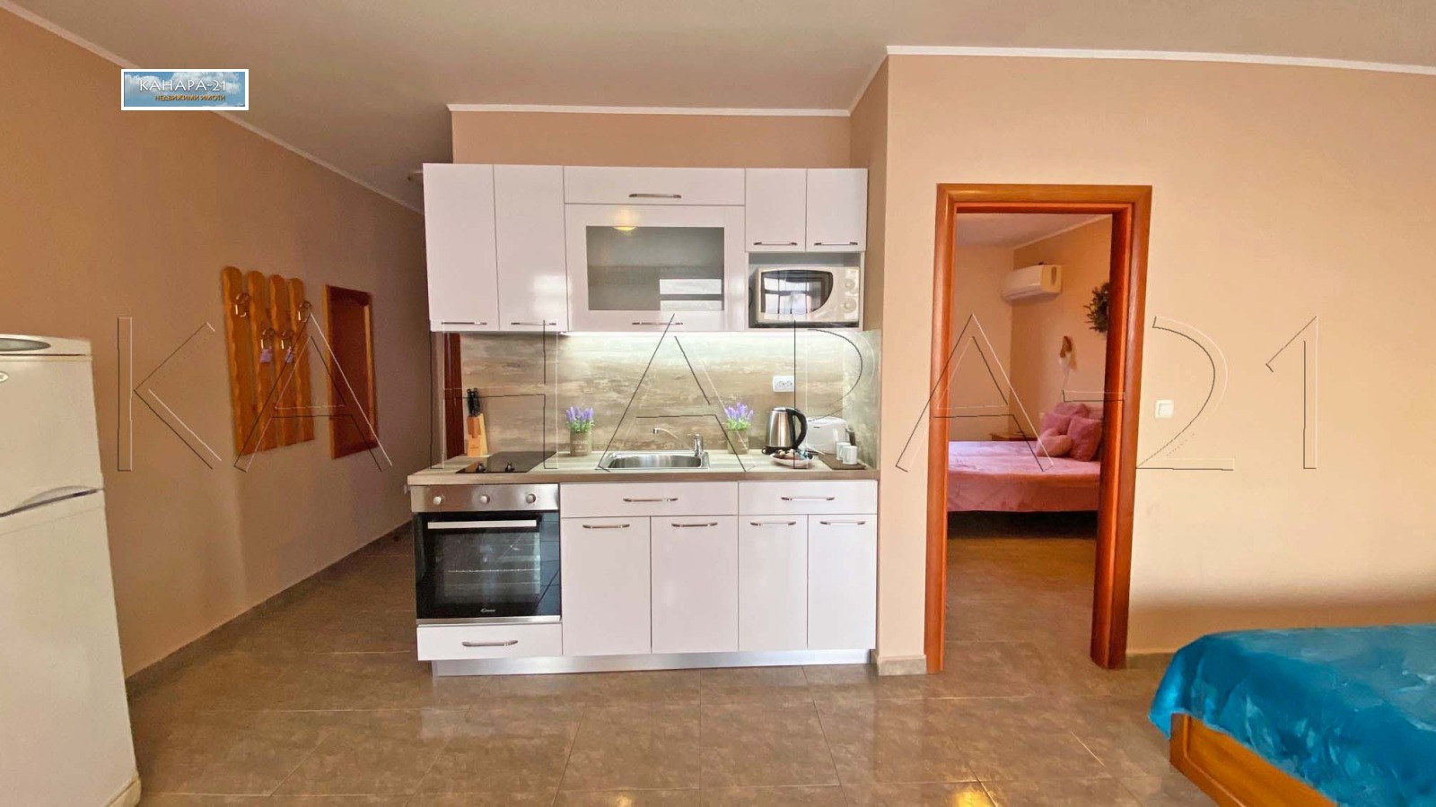 'KANARA-21' rents on the FIRST LINE in Sveti Vlas, for short-term rent exclusively one bedroom fully furnished and equipped apartment. Beautiful panorama sea. Complex 'Dolce Vita'. 50 euro / night