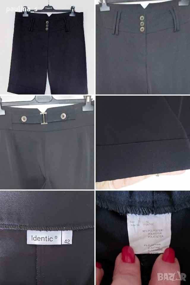 3️⃣ Колаж / L / 2XL "Identic". Дреха за повод или офис. Цената е крайна, без пазарлъци 20 евро. Немачкаеми черни бермуди тип пола-панталон с маншет. Подходящи са за офис или повод. Платът е микрофибър, дрехата е луксозна и елегантна, с еластичност. Без дефекти, като нови.
