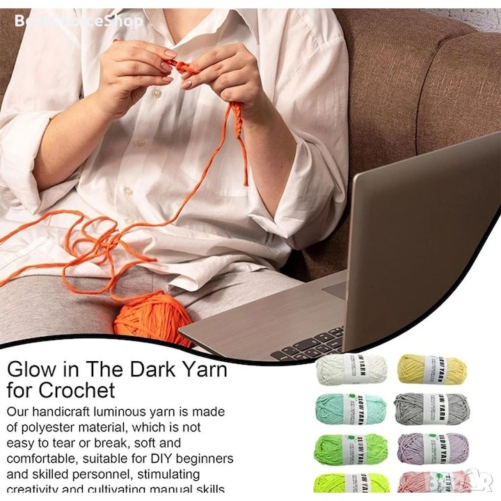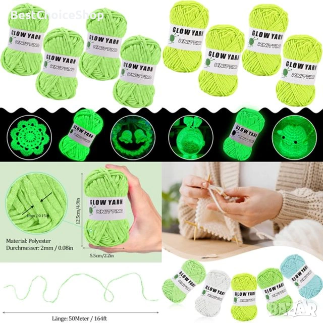 Светеща в тъмното прежда за плетене. 4бр